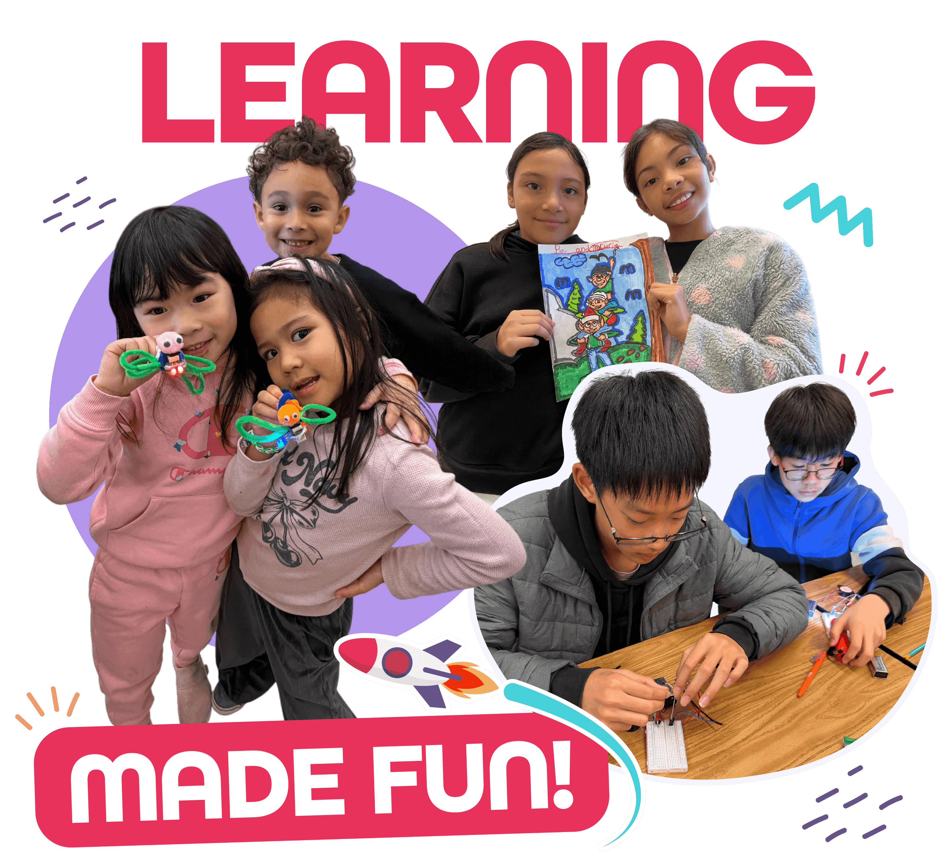 Engaging, hands-on STEAM experiences where students explore robotics, coding, and creative technology in a fun, supportive environment.